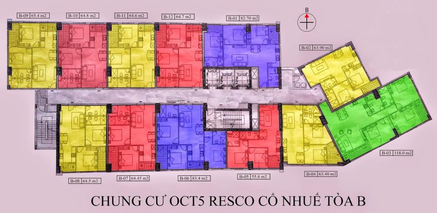 Mặt bằng thiết kế tòa B OTC1 Khu đô thị mới Resco Cổ Nhuế